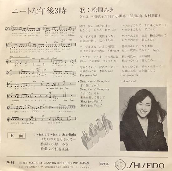 81年。和ディスコ「ニートな午後3時」。SIDE-B、作曲&編曲松任谷正隆。